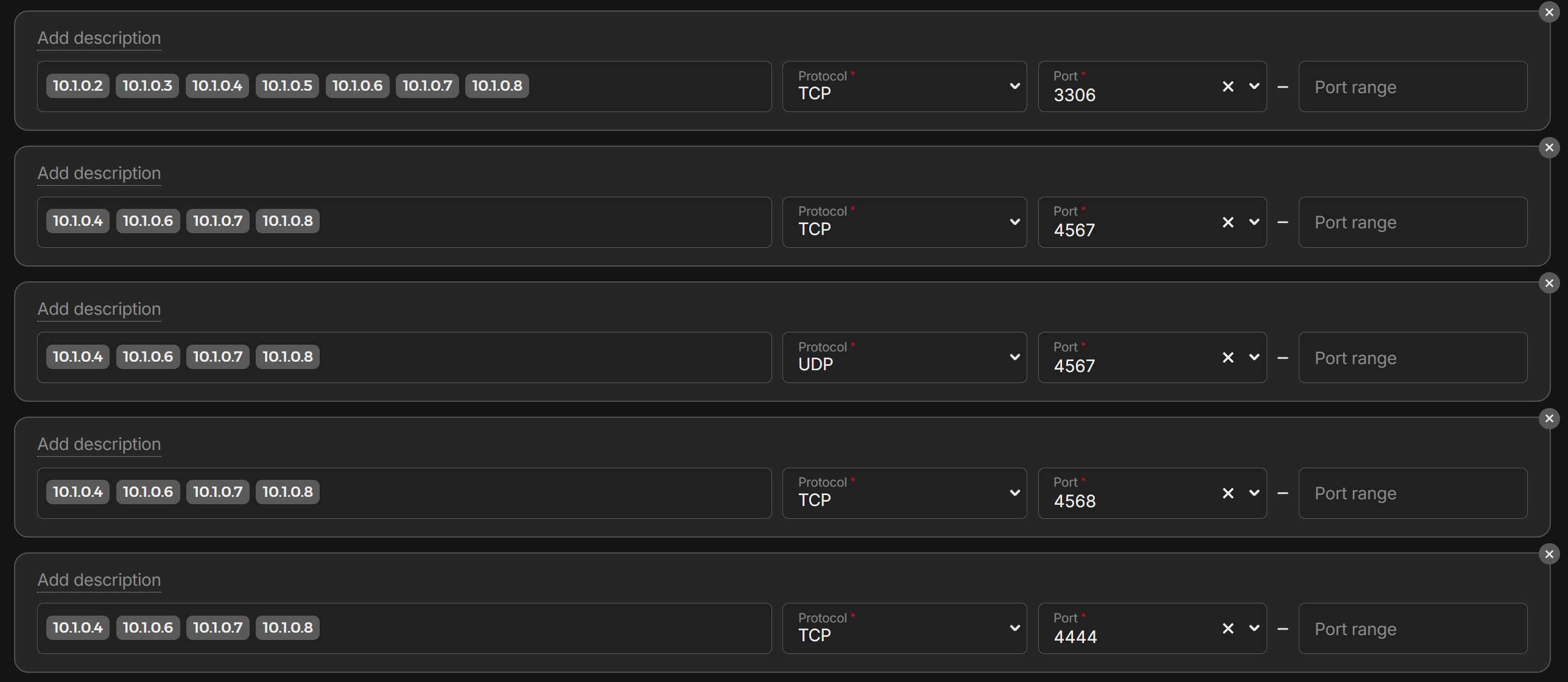 Here are the ports needed for Galera, associated with various private IP addresses: