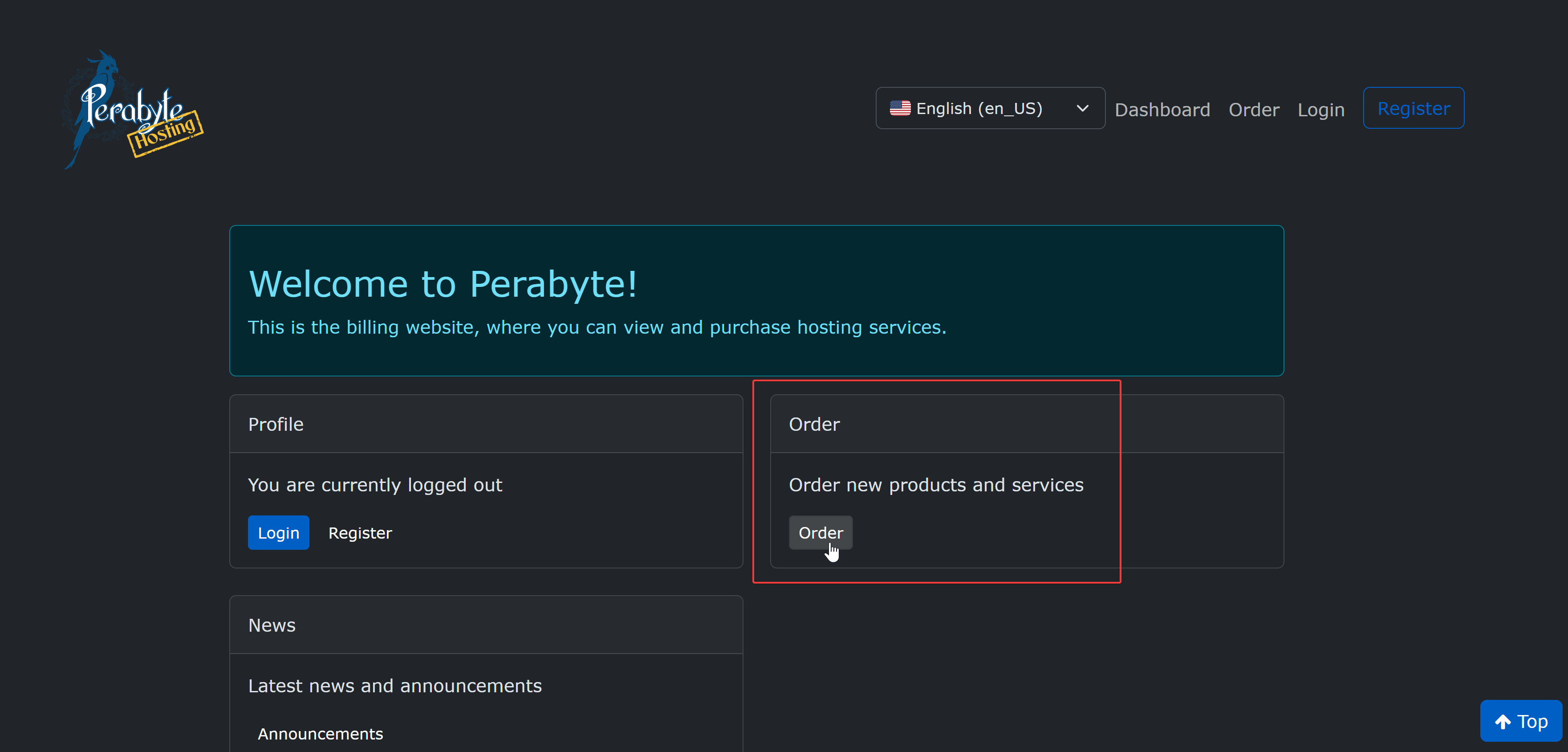 You will be working with two websites over the course of this guide. The billing website, billing.perabyte.host, and the URL of your server, which may vary.
