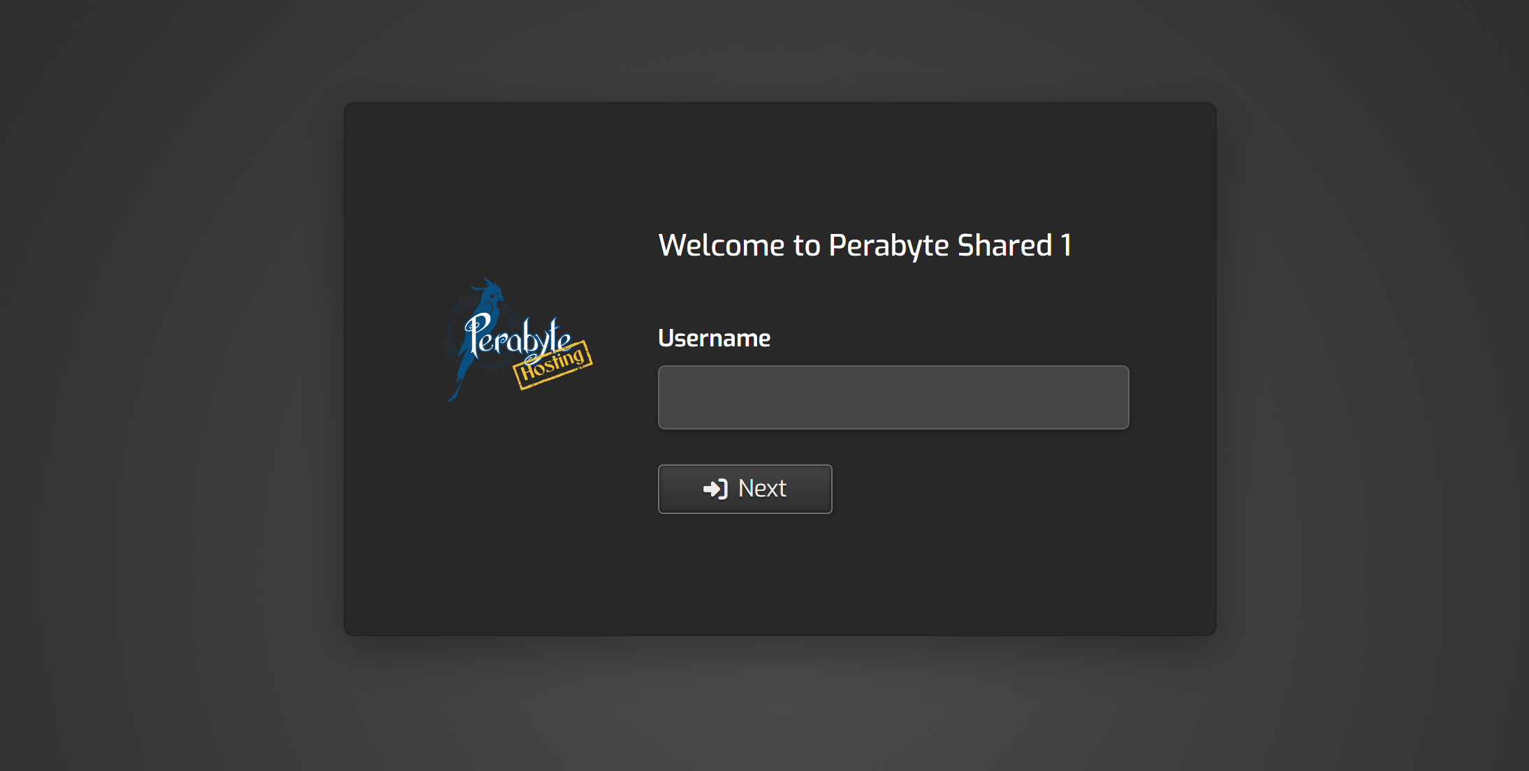 Go to the website listed as your "Control Panel URL". In my case, that's shared1.perabyte.host. You should be presented with this screen. Enter the username and password provided in the email.