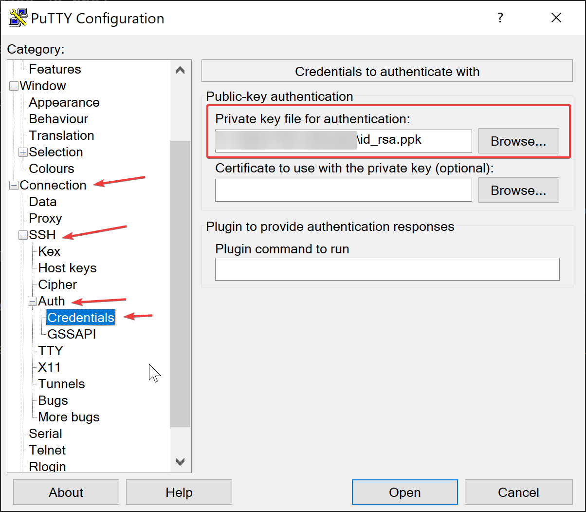 When you type in the Repository URL, it will automatically open a field for you to select your private SSH key. You want to select your key formatted for OpenSSH, NOT the .ppk file.