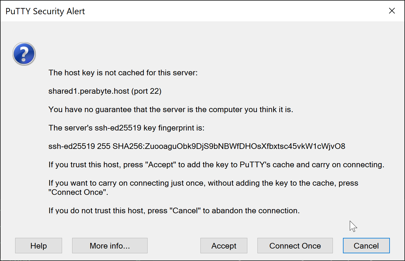 You may see a warning when connecting for the first time. Click "yes", "accept", or whatever equivalent for your SSH client.